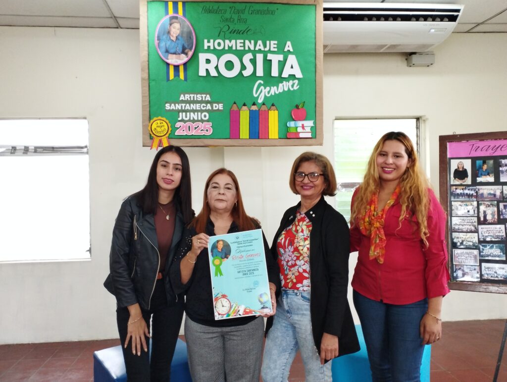 Como parte de su programa mensual de reconocimiento a personalidades destacadas de la ciudad, la Biblioteca Pública David Granadino homenajeó a la maestra y artista Rosa Estela Genovés, en un emotivo acto que resaltó su trayectoria y su compromiso con la educación y la cultura santaneca.