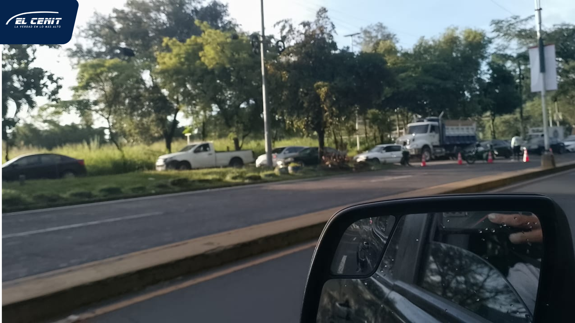 En la imagen principal se observa una fila de automóviles detenidos y personal de tránsito regulando el paso. Hasta el momento, no se reportan personas lesionadas, pero se recomienda buscar rutas alternas para ingresar a la ciudad.