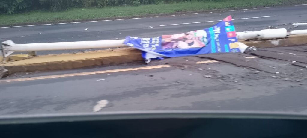 La caída de un poste en las cercanías del redondel El Trébol generó un intenso tráfico en la principal vía de ingreso a la ciudad de Santa Ana durante la mañana de este miércoles.
