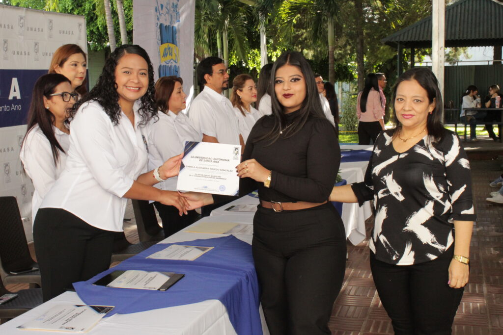 La actividad inició con una ceremonia especial en la que entregaron diplomas a los estudiantes más destacados de cada carrera, premiando no solo sus calificaciones, sino también sus capacidades, esfuerzo y constancia. Durante su intervención, Máster Patricia Molina de Núñez, Vicerrectora de UNASA, destacó la importancia de reconocer el trabajo de quienes han demostrado excelencia a lo largo del año.