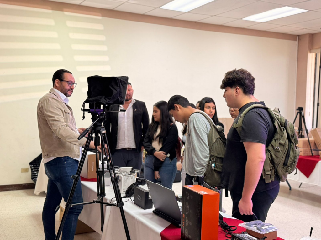 El licenciado Javier García, docente de la Escuela de Diseño Gráfico, explicó que el equipamiento fortalecerá áreas estratégicas como impresión y escaneo 3D, fotografía, producción audiovisual, realidad virtual, ilustración digital y edición multimedia. Entre los recursos incorporados destacan impresoras de resina, escáneres 3D, cámaras fotográficas y de video, equipos de iluminación profesional, drones, consolas de audio, estaciones de edición y renderizado 3D, tabletas de dibujo y lentes de realidad virtual.