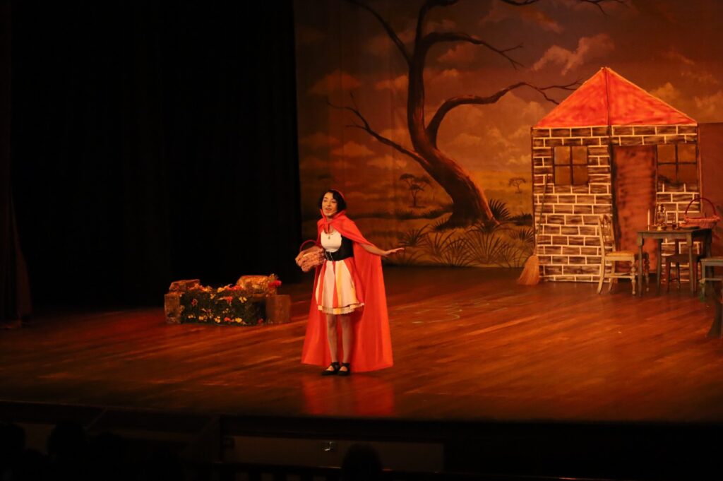 Con risas constantes y un mensaje educativo para el público infantil, la obra “Caperucita Roja y el Lobo Feroz” se presentó en el Teatro Nacional de Santa Ana, donde reunió a estudiantes y familias en una adaptación dinámica que combinó humor, música y una reflexión sobre la importancia de no confiar en extraños.