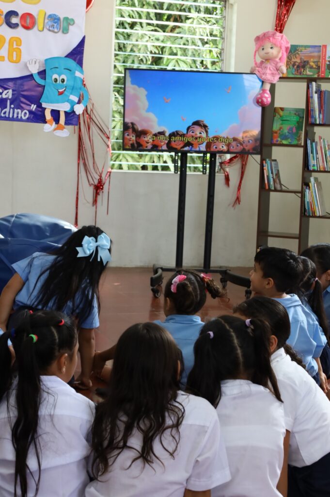 Las risas de 25 niños y niñas llenaron la Biblioteca Pública David Granadino durante la bienvenida al año escolar 2026, una jornada organizada con un show de títeres para estudiantes de parvularia y primer grado del Centro Escolar Dr. Humberto Quintero.